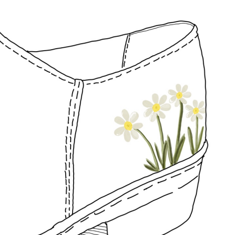 Puedes elegir entre margaritas de distintas formas y en la zona del calzado que te guste más (yo recomiendo costados).